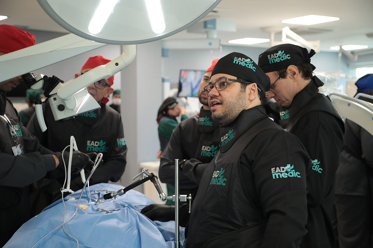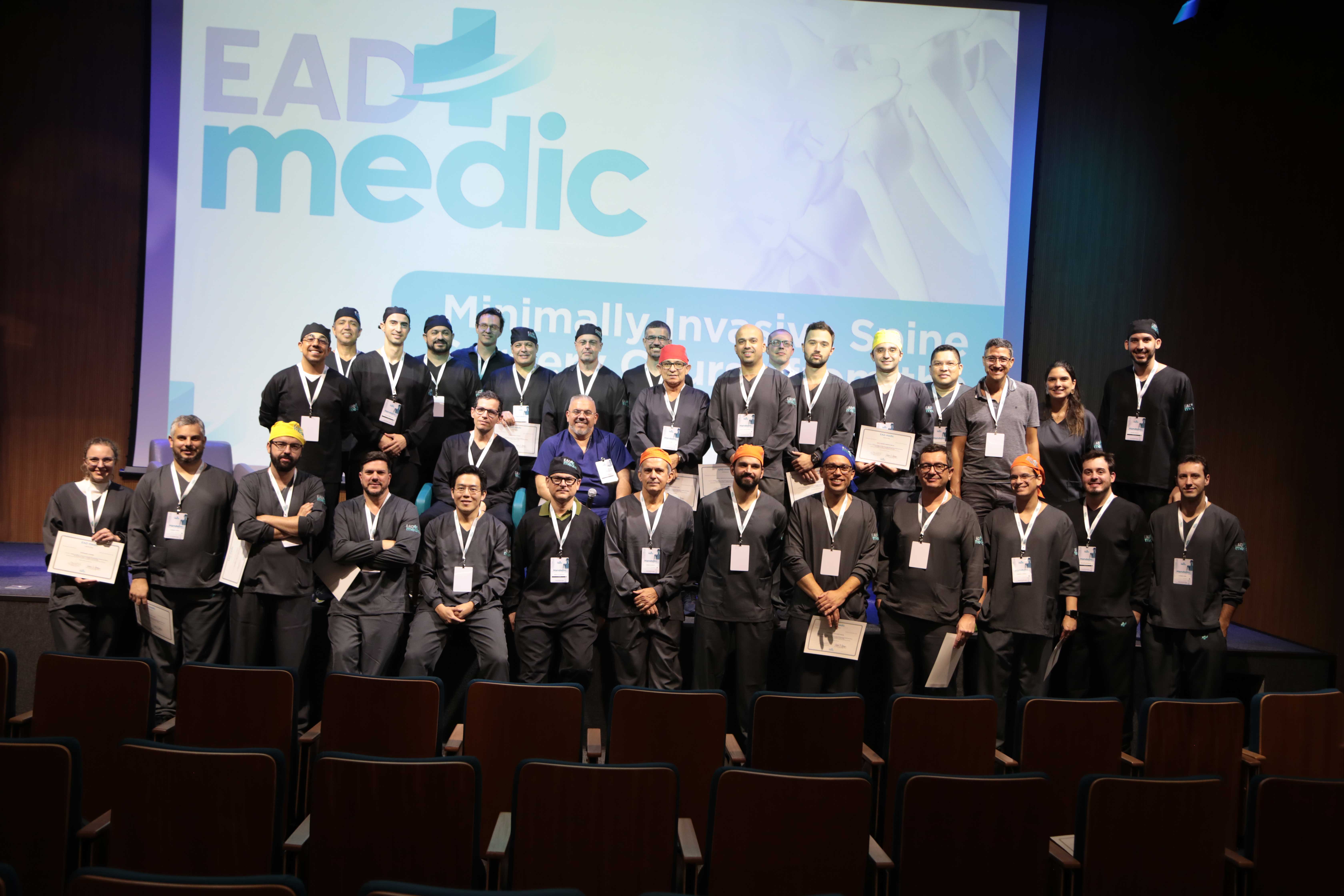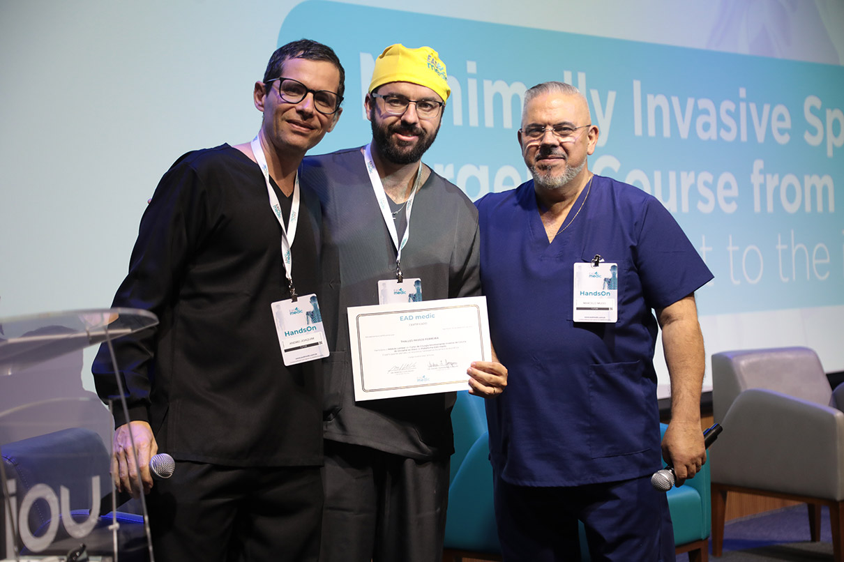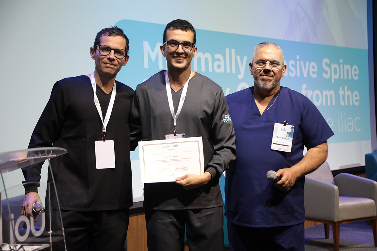 Durante a parte teórica, oferecida em 40 módulos no sistema de ensino a distância (EAD), os alunos aprenderam as diversas técnicas minimamente invasivas para tratamento da coluna vertebral.