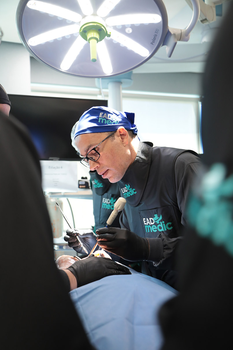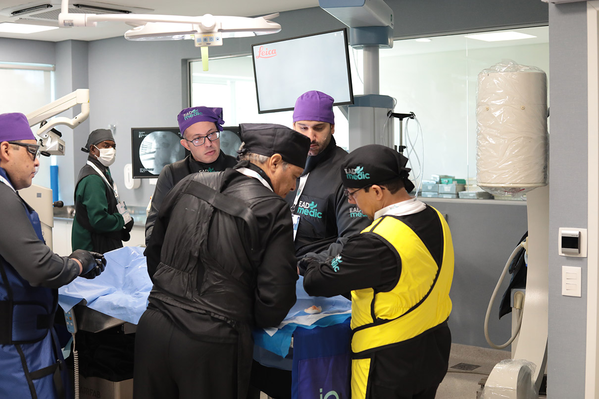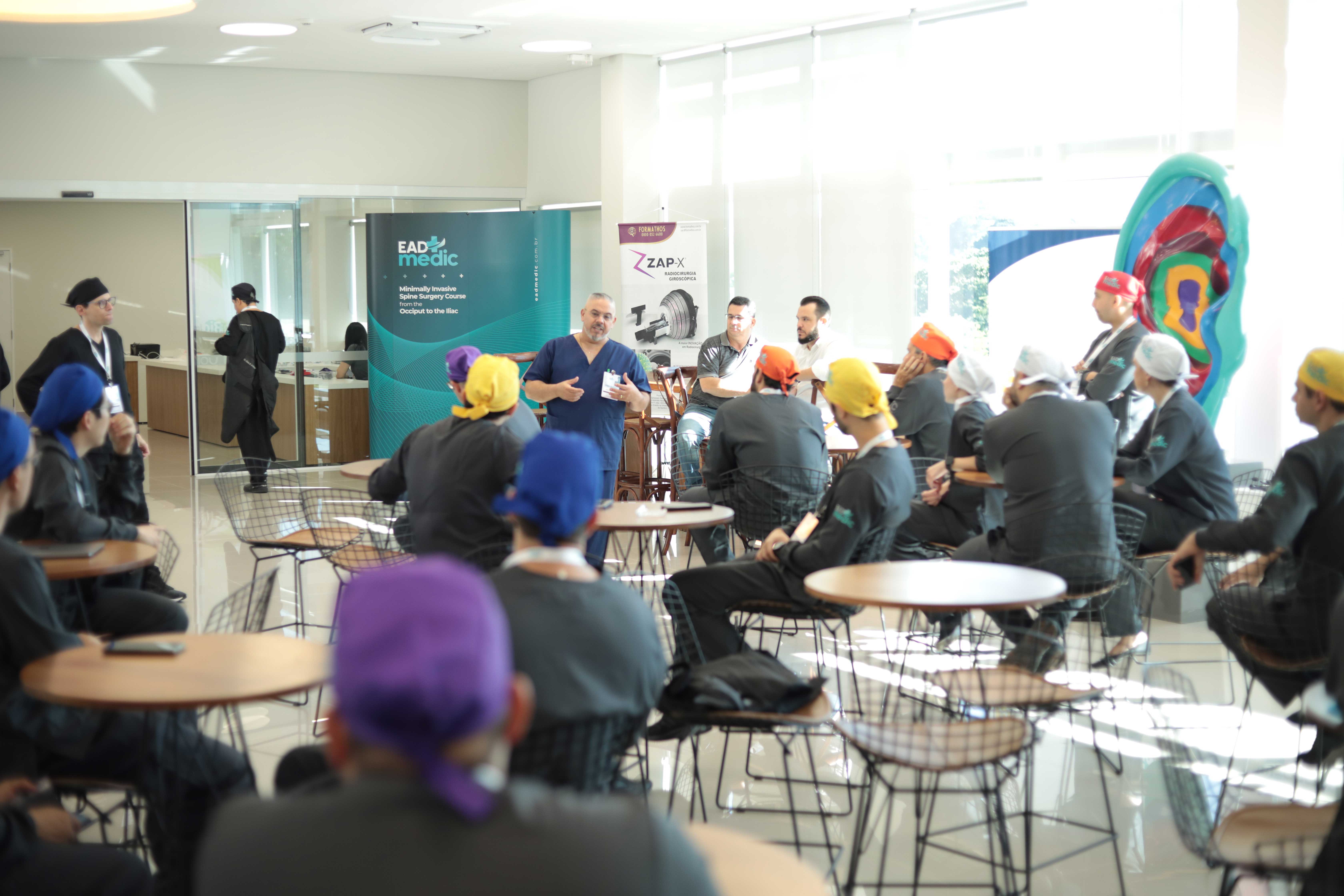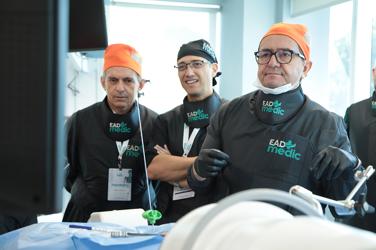 Durante a parte teórica, oferecida em 40 módulos no sistema de ensino a distância (EAD), os alunos aprenderam as diversas técnicas minimamente invasivas para tratamento da coluna vertebral.