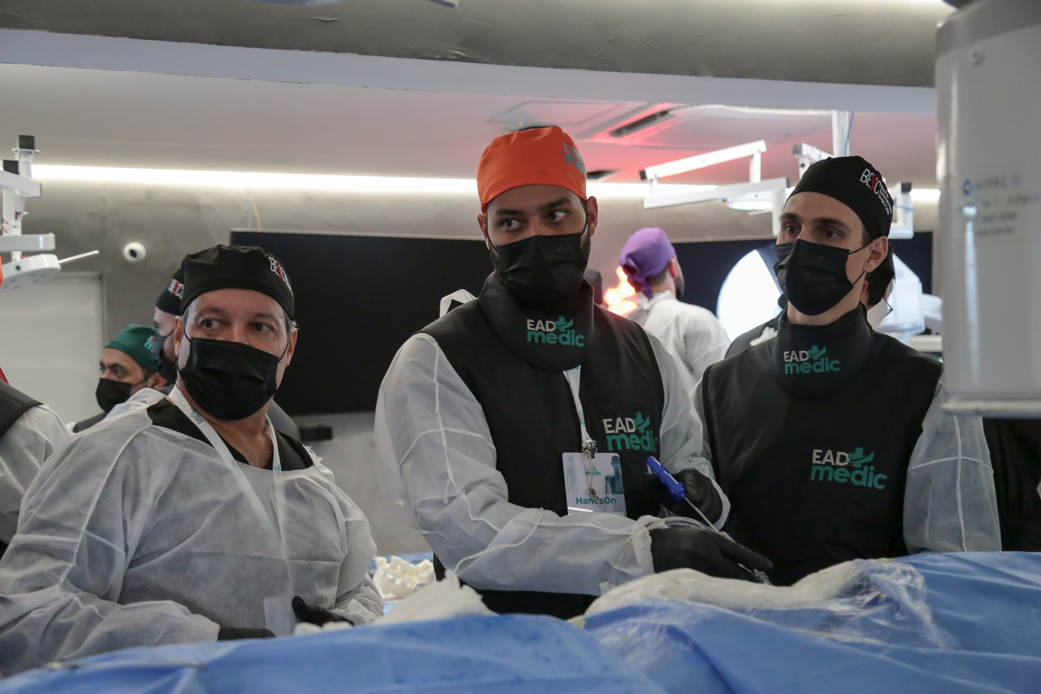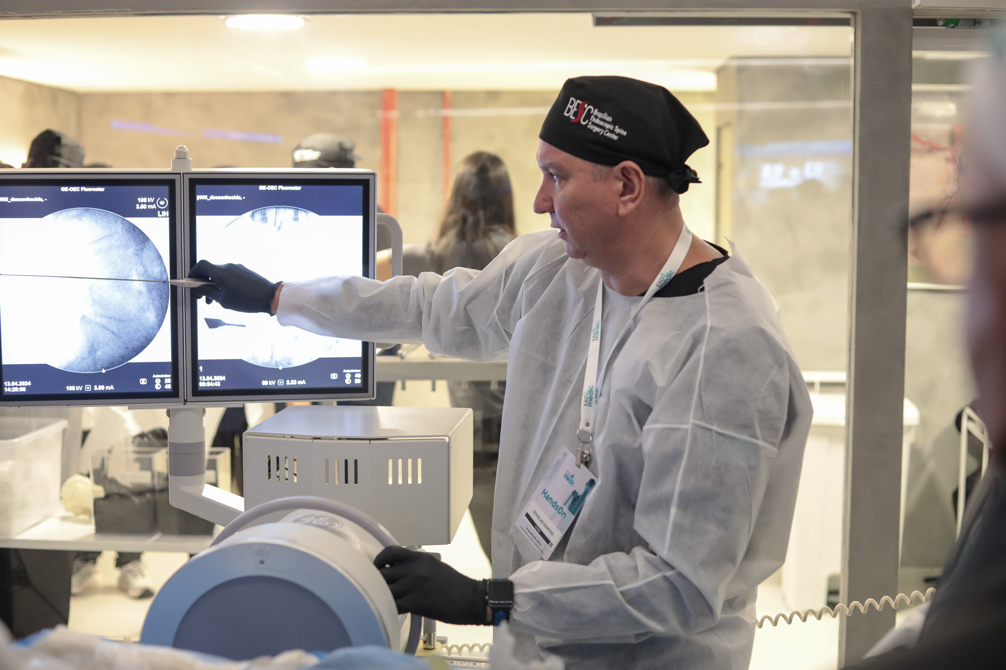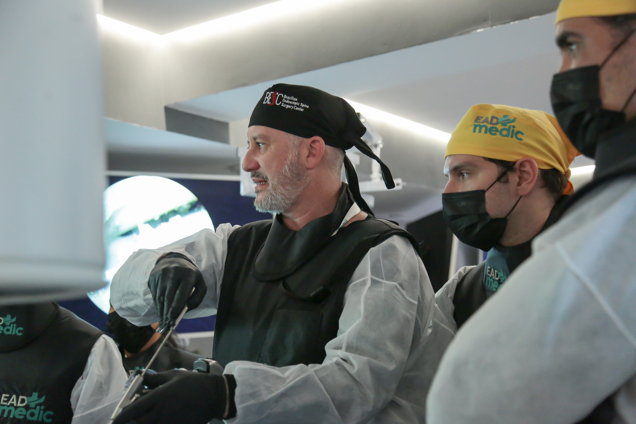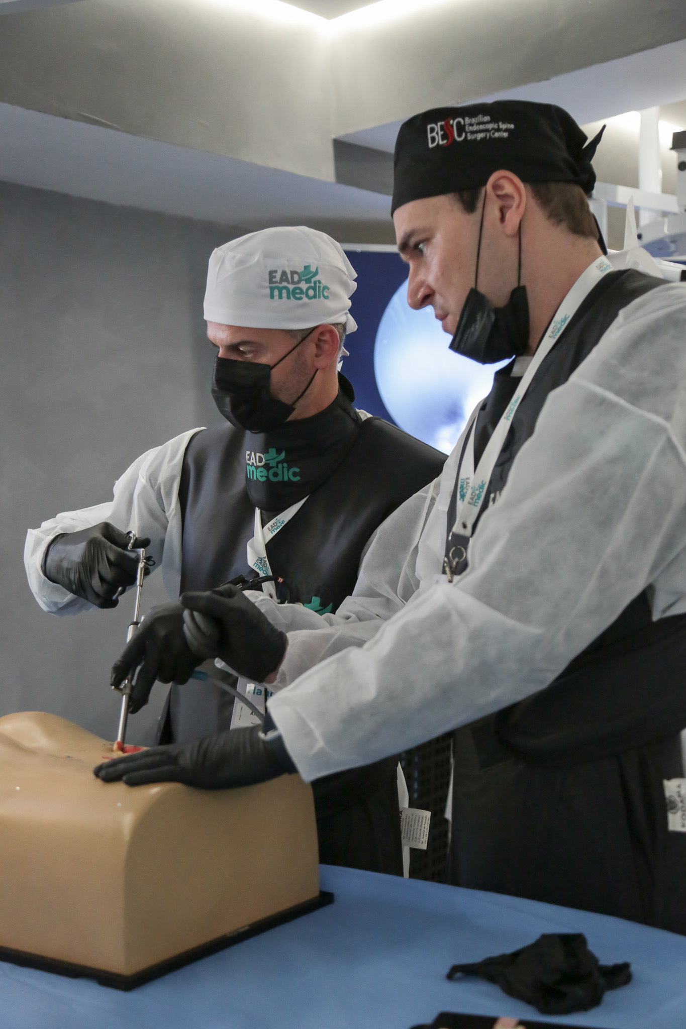 Depois de todo conteúdo teórico e exclusivo no modelo EAD, com videoaulas dinâmicas, podcasts, materiais de apoio em PDF e webinários para tirar dúvidas e discutir casos, a 18ª turma do curso essential de cirurgia endoscópica da coluna participou do hands-on, nos dias 12 e 13 de abril, quando pôde colocar em prática as técnicas aprendidas.
